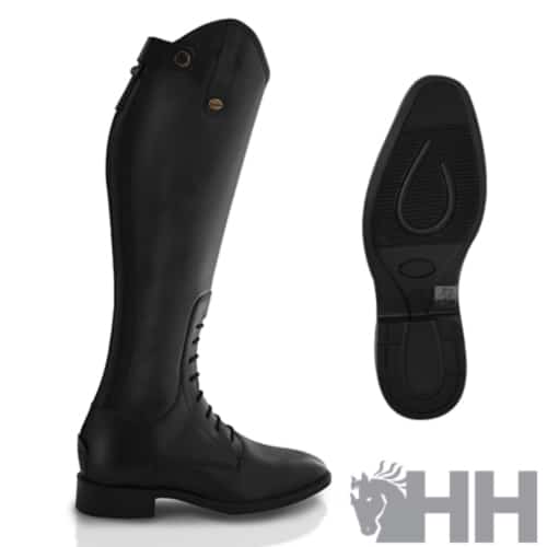 Bota de montar inglesa realizada 100% de cuero real de primera calidad. Incorpora forro interior CAMBRELLE absorbente del sudor. Cordones elásticos en el frontal a la altura del empeine. Anatómica con diseño con el tobillo moldeado para una mejor sujeción y elástico trasero para un ajuste perfecto.